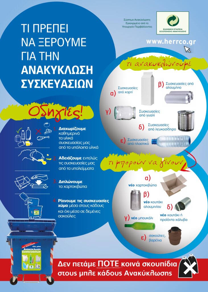 Ανακύκλωση αποβλήτων συσκευασίας στον μπλε κάδο